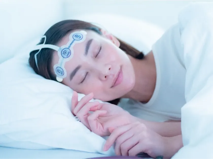 筑波大学の睡眠研究所が開発した、脳波で睡眠の質を医療レベルで調べる睡眠検査です。頭部に専用電極を装着して就寝時の脳波を測定し、医療レベルで睡眠の質を評価します。