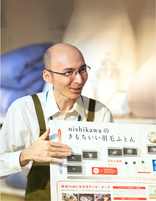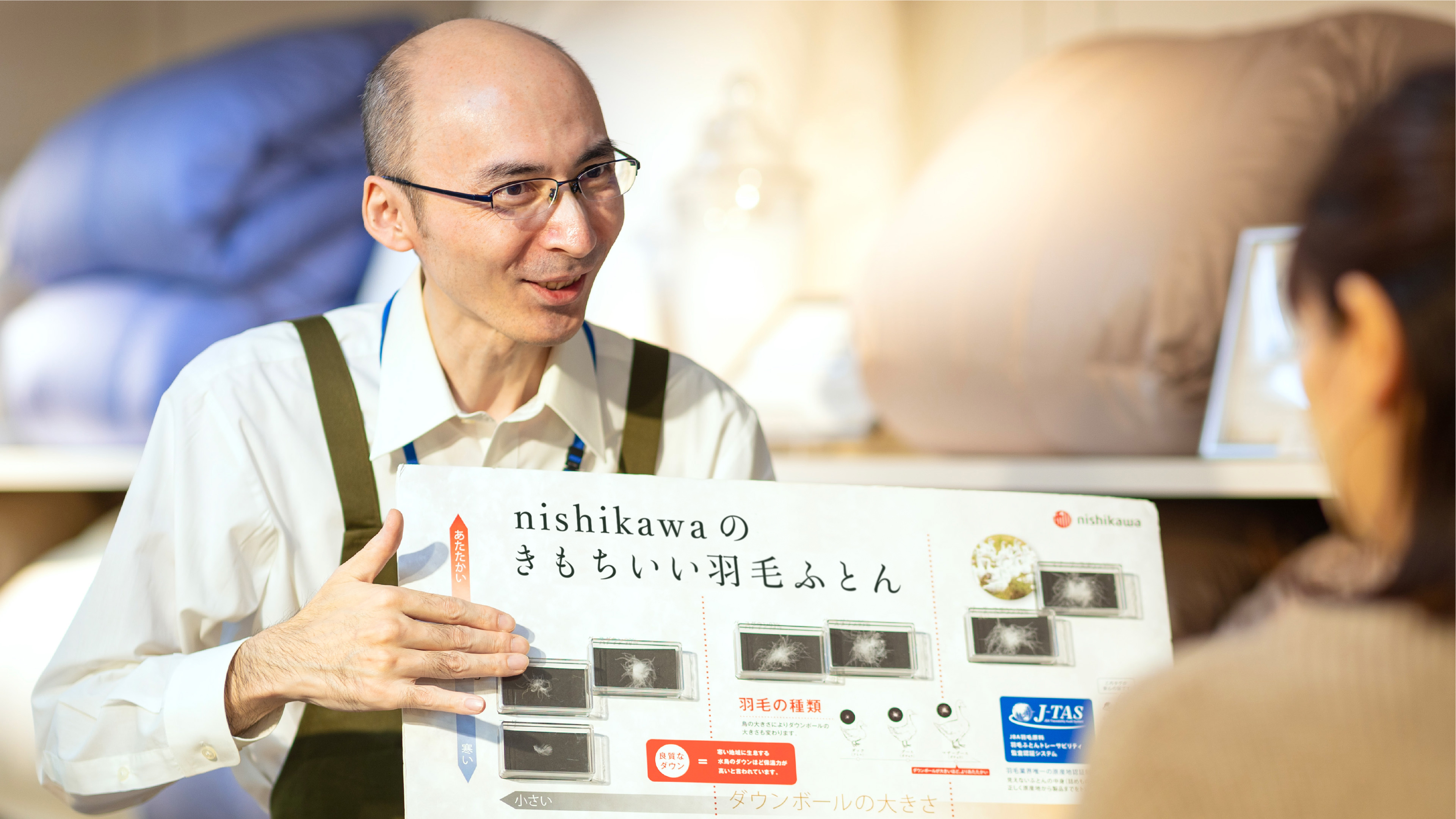 もともと電気部品メーカーの営業をやっていましたが、生活者に近い所で仕事がしたいと考え、nishikawaで販売の仕事をすることにしたのがnishikawaに入ったきかっけです。