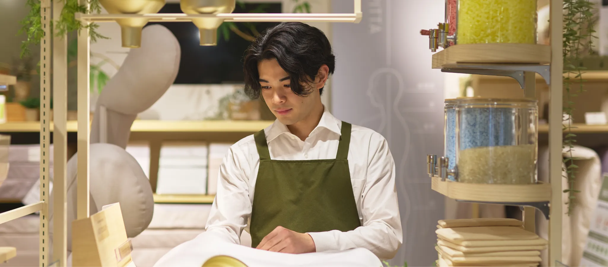いま私はnishikawaの店舗にて、研修生として業務に励んでいます。おもな業務は接客ですが、並行して商品知識を深めるとともに、お客さまとの対話を通じてどんな商品が求められているのか、どの商品に改善の余地があるのかなど肌で実感しながら学んでいます。
