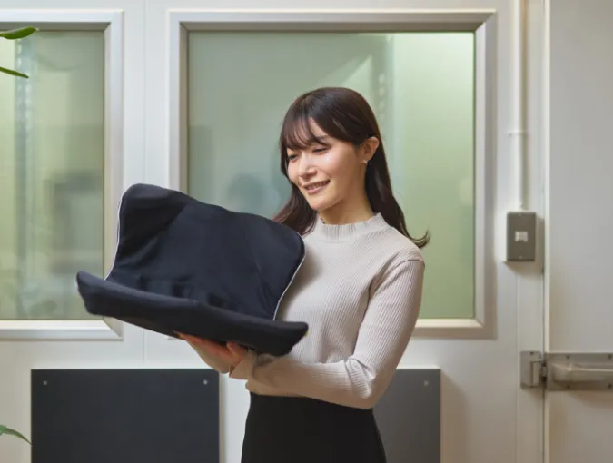 入社以来、研究開発室一筋で10年が経ちました。マットレスやまくら、ナイトウェアなどの寝具・寝装類から、睡眠科学にもとづいたオフィスの仮眠スペース「ちょっと寝ルーム」。また、寝ているあいだに美しくなることを目指す「美容睡眠」アイテムなど、快眠や健康をサポートする製品の開発を幅広く担当しています。