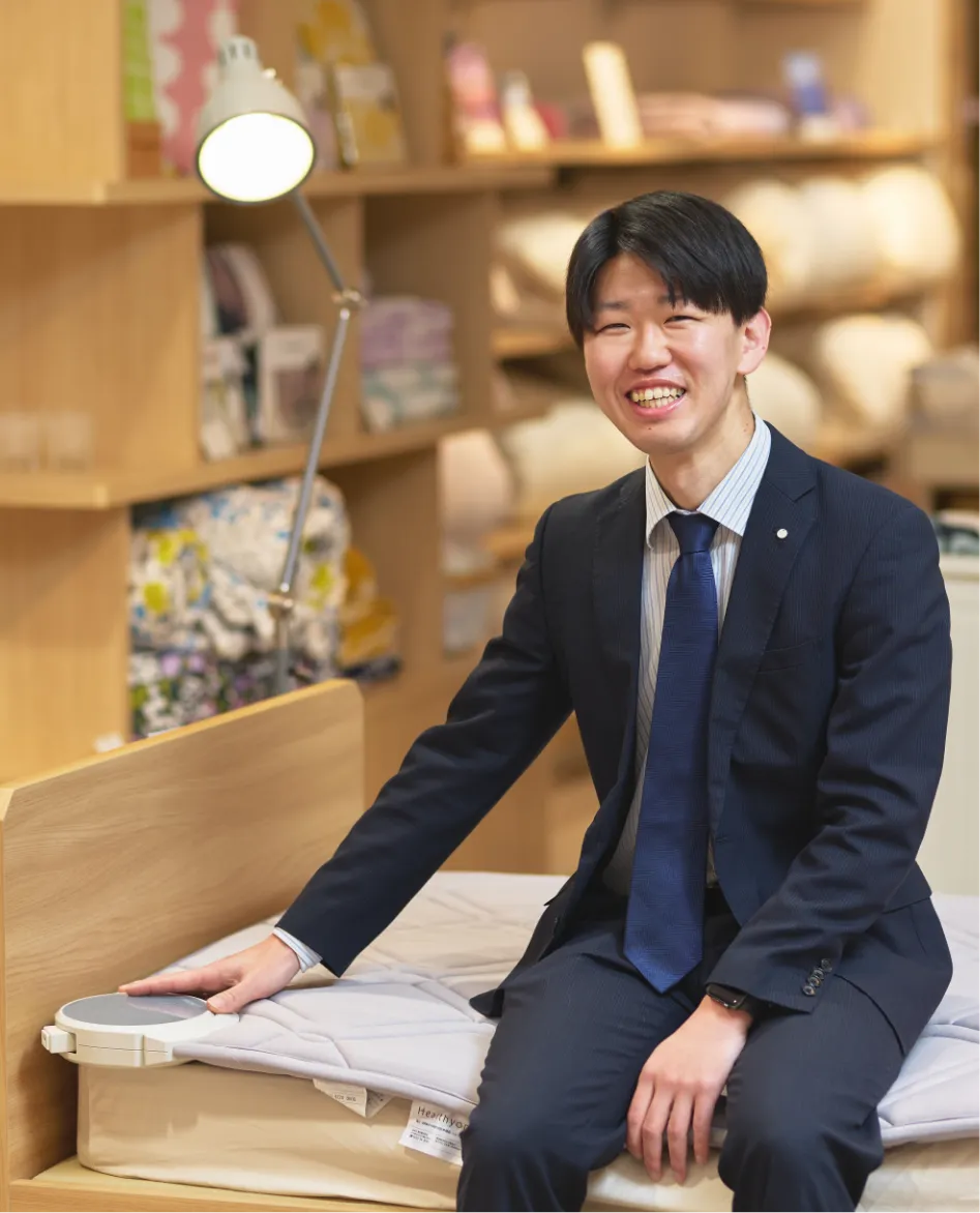 お客さまと伴走しながら商品提案・売場づくり・販促までを推進し、睡眠の価値を社会に広げる役割を担います。市場の声を最前線で捉え、社内へフィードバックして商品や施策の改善につなげます。