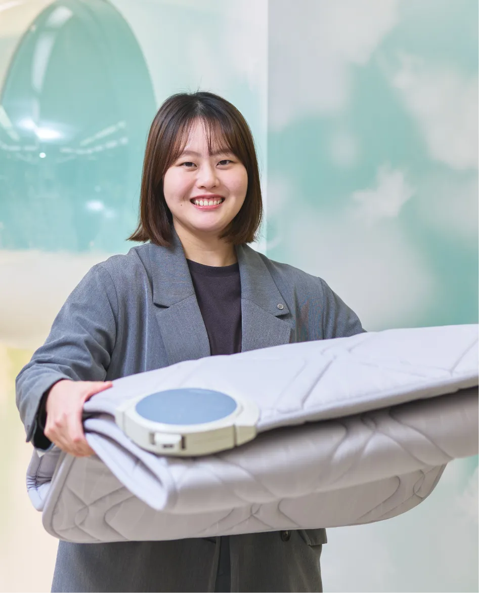 素材や構造を検討し、試作→評価→改良を繰り返して品質を高めます。感覚的になりがちな“寝心地”を、根拠ある形に落とし込みます。
