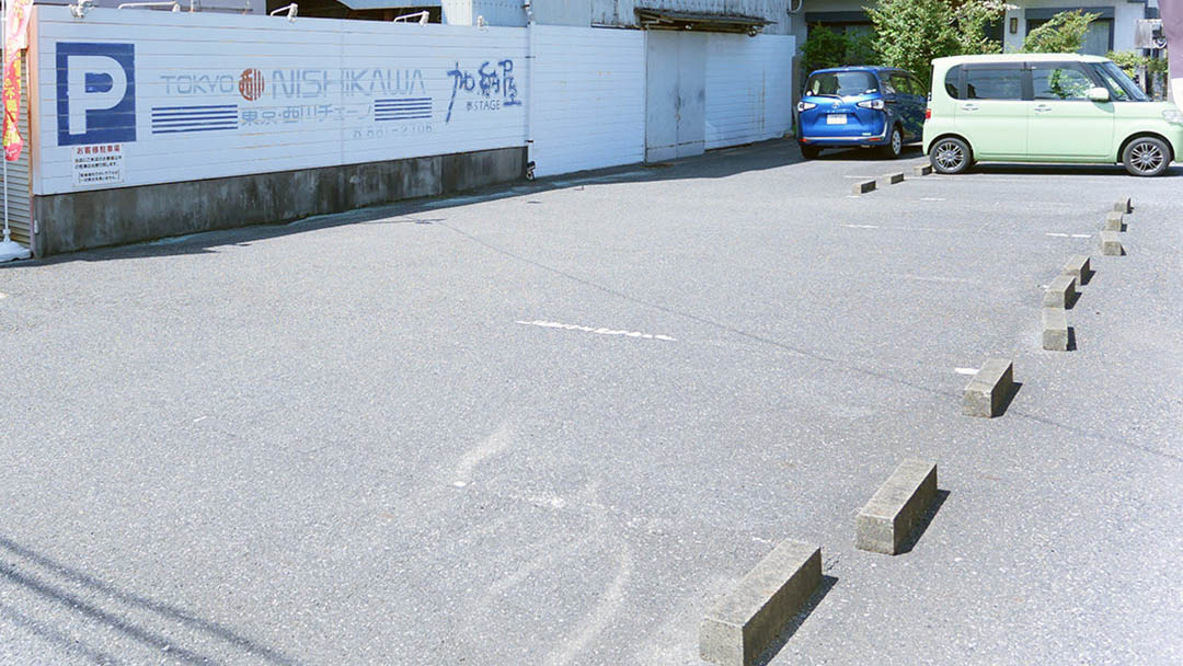 店舗のすぐ横には広々とした駐車場。メンテナンスのため、布団の持ち運びにも便利です。