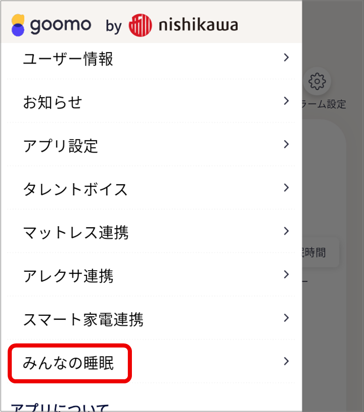 睡眠記録はgoomoアプリからのみ閲覧できます。