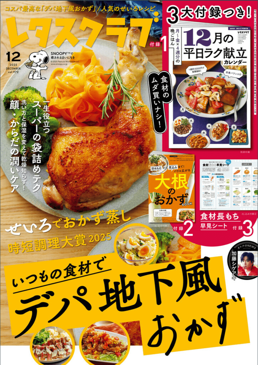 『レタスクラブ(11月25日発売)』にて《スリープピュアダウンレッグウォーマー》が掲載されました