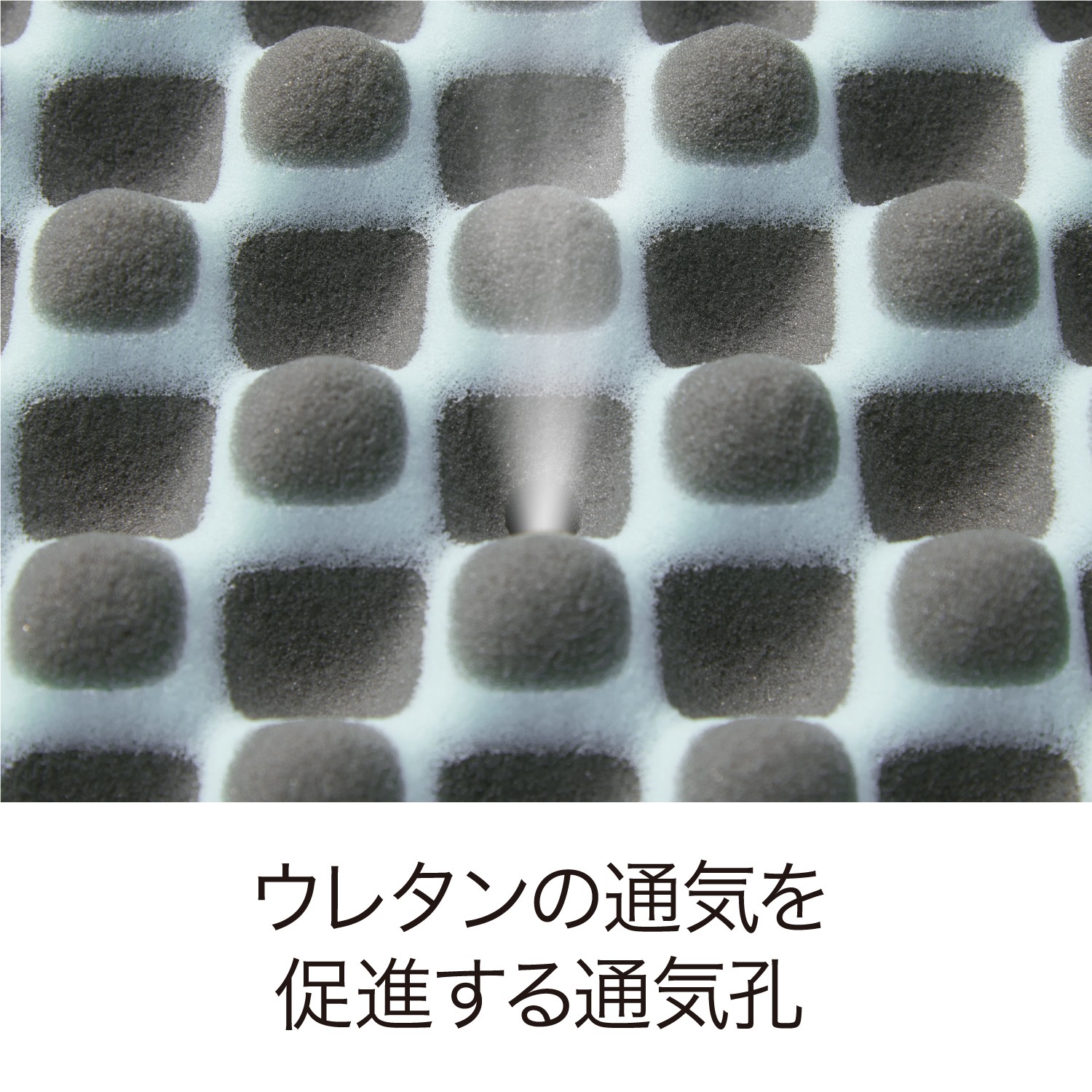 ウレタンの通気を促進する70個の通気孔が、湿気や汗を拡散・放湿します。睡眠中の不快感を軽減するとともに、干す手間やホコリの心配も少なく、お手入れがラク。
