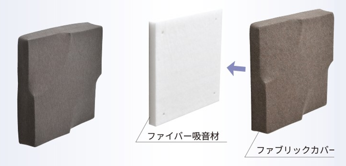 さらに、完成後の建物に後から貼り付けるタイプの吸音パネルであるため「仮設」扱いとなり、絵画を飾るような感覚で手軽に設置が可能。オフィスの会議室や高速道路・鉄道用防音壁の内部素材、建機エンジン回りの吸音材としてなど、様々なシーンで採用されています。