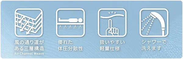 お使いの寝具をそのままに、究極の通気性と心地良さをプラス、